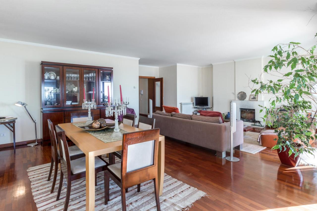 A sala com 60m2, tirando vantagens do seu sexto andar, tem uma vista priveligiada sobre o mar de Matosinhos.